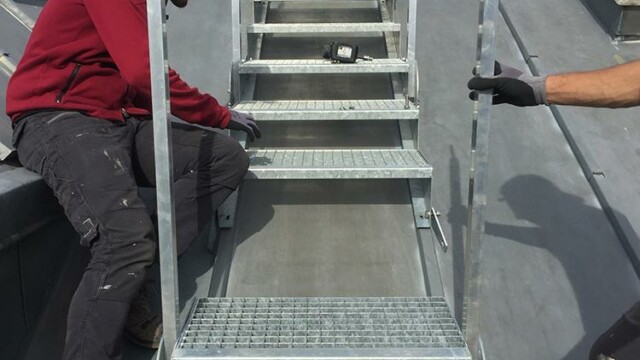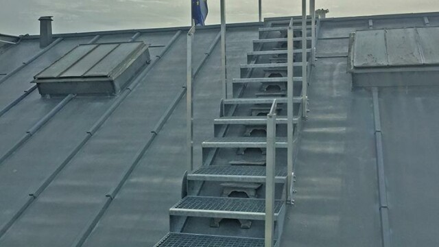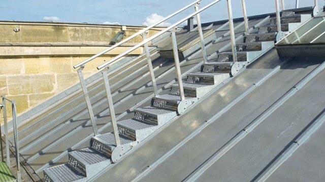 Objectif : Remplacer les anciennes marches haussmanniennes défectueuses pour assurer le cheminement des techniciens affectés à l’entretient du porte drapeau.