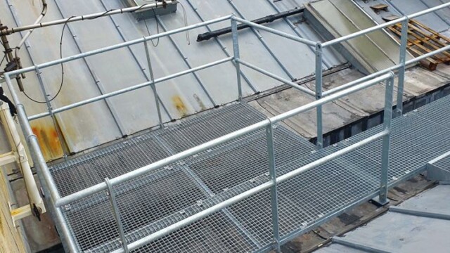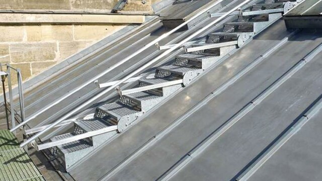 Chantier chemin d’accès et plateforme sur toiture zinc.