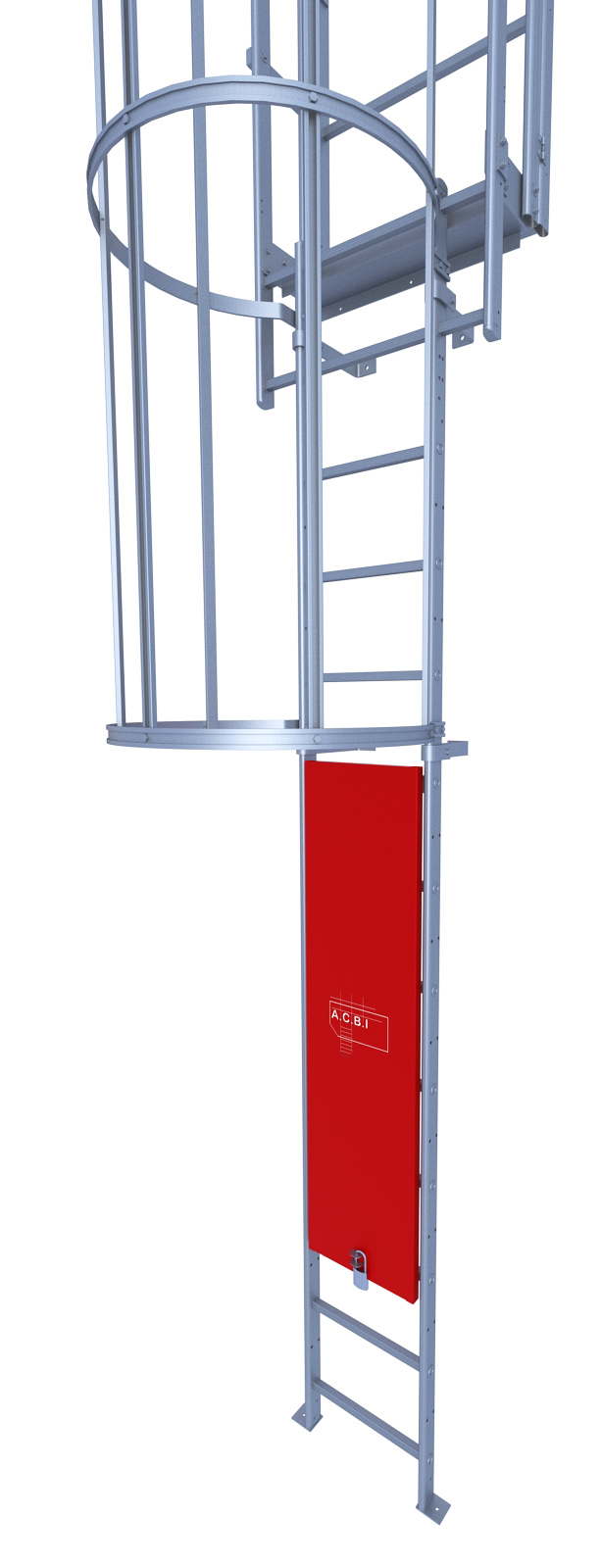 La porte à crochets ACBI est un dispositif de fermeture installé à la base de l’échelle à crinoline. Elle permet de contrôler l’accès à l’échelle en empêchant toute montée non autorisée.